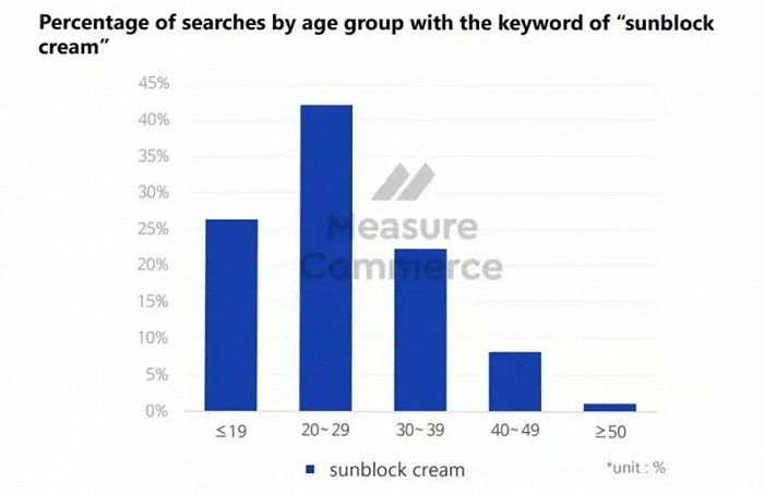 MeasureCommerce分析数据显示,在互联网上搜索防晒品类相关内容的女性消费者,30岁以下的占到了70%。与2019年同期相比,“女学生”这一产品营销关键词的活跃度增长了8%。