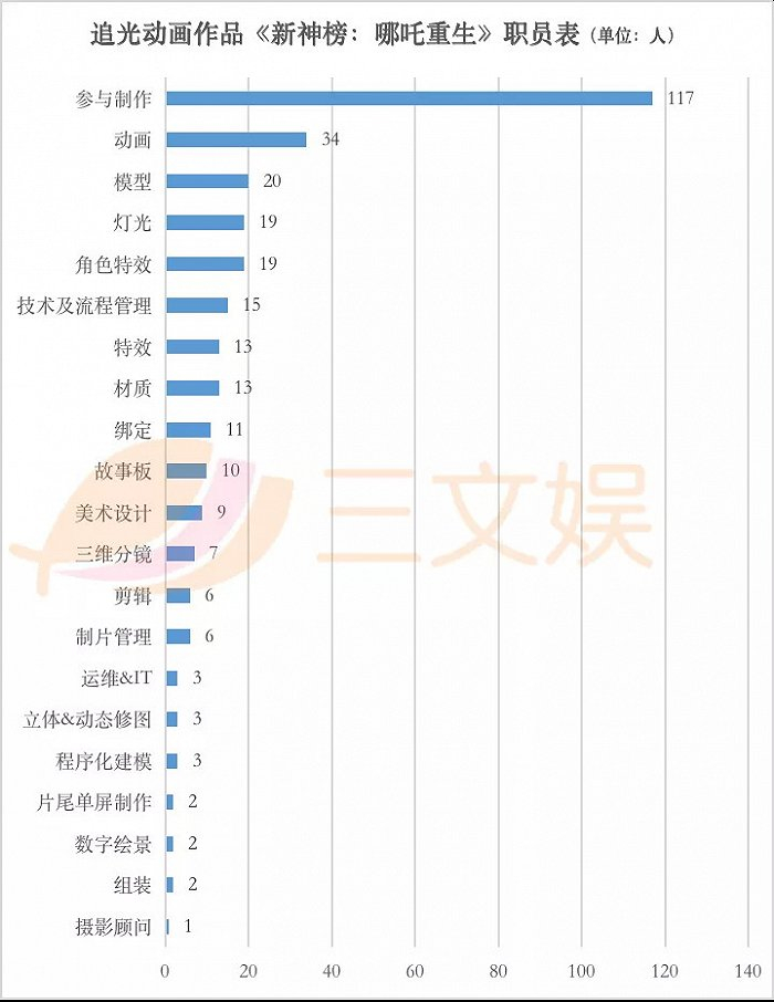在一个项目的制作中,并非全员跟进,有部分制作人员是在项目需要的时候加入,完成后再投入另一个项目中。比如,在《新神榜:哪吒重生》结束放映后追光动画滚动字幕里的117位参与制作人员,就是在项目需要的时候加入。