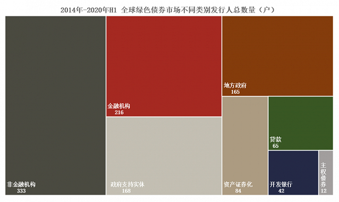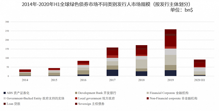 2014年,国际资本市场协会(ICMA)和气候债券倡议组织(CBI)分别发布了“绿色债券原则(The Green Bond Principles, GBP)”和“气候债券组织标准(Climate Bond Standards, CBS)”,二者构成了最重要的自律性行业认证标准,为全球绿色固定收益资产的标准统一以及中介认定体系的发展奠定了基础,从制度上推动了绿色债券发展。自此,国际绿色债券的参与发行主体逐步多元化,发行主体范围逐渐扩大,由最初的政策性金融机构逐渐扩展到市政机构、地方政府、商业银行和企业,更多的私营部门企业加入到绿色债券的发行人行列,创新品种也不断问世,绿色债券正式步入快速发展通道。