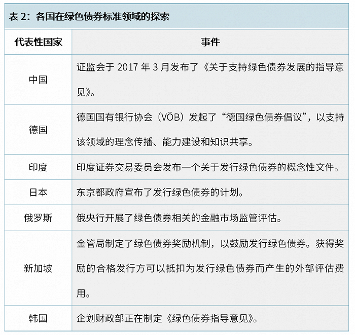 同时,很多国际机构和各国政府都在绿色债券市场发展方面进行不断探索: