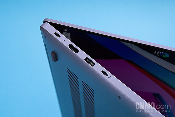 15寸笔记本电脑相比14寸、13寸而言,更大机身空间带来的全功能接口使得笔记本电脑的外接扩展性也变得更好。在机身的左侧,分别是两个USB-C接口2个以及一个全尺寸的HDMI接口以及USB3.2接口,其中2个USB-C接口一个可以支持充电、数据传输,另一个则是雷电4接口。