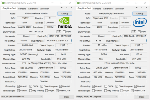除了标压处理器的配置,显卡方面,也选择了目前英伟达针对轻薄笔记本电脑所推出的最新独立显卡——NVidiaGeForceMX450,关于这款显卡,就不过多介绍了,此前经常关注CNMO评测小伙伴想必都有了解,配置数据如下: