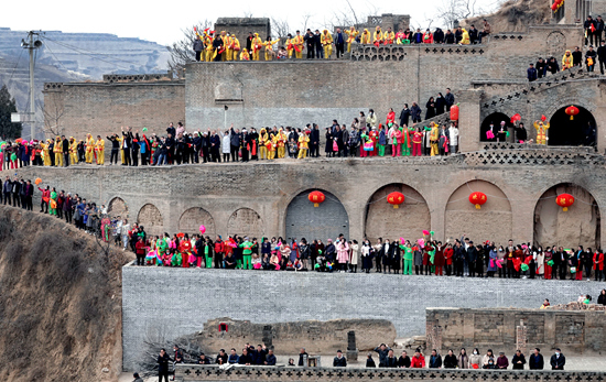 2月14日,农历大年初三,山西省吕梁市方山县峪口镇张家塔村张灯结彩,500多位村民拍摄“全村福”。视觉中国供图