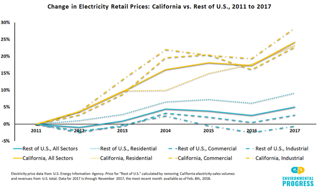 虽然经历了2000年的电力危机,但加州政府的电网管理能力并没有得到有效提高。过去几年,加州的零售电价不断上涨,无论是涨价幅度还是电费水平,都冠绝美国本土48个州。但付出高额电费的加州居民并没有获得稳定的电力供应。几乎每次停电,加州居民都会把怨气指向PG&E和加州公用事业管理委员会。