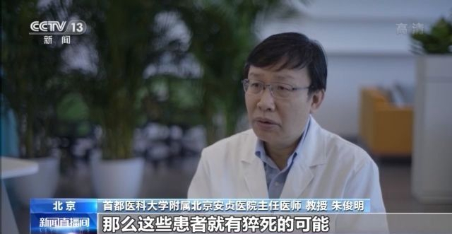 首都医科大学附属北京安贞医院主任医师 教授 朱俊明:最危险的还是来自于主动脉瘤和主动脉夹层,由于之前可能没有得到明确的一个诊断,那这些患者就有猝死的可能。