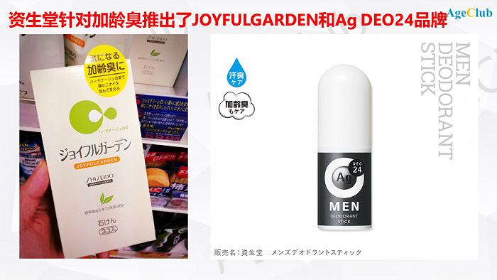 发现加龄臭现象的资生堂成为最先开拓“老人味市场”的日本企业,2000年左右资生堂发售了专门用来抑制这种臭味的洗发水“JOYFUL GARDEN”,上市之后年销售额增速保持在20%以上。