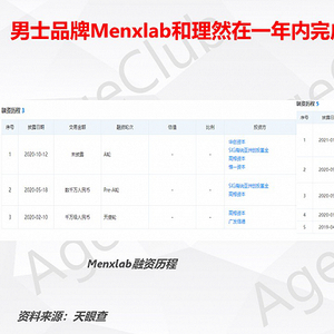 2020年10月,专注男士品质健康生活的初创品牌Menxlab漫仕完成数千万元的A轮融资。成立不到一年,Menxlab就先后完成三轮融资,累计融资额超亿元。