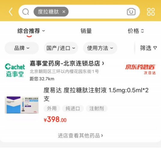 (在京东app或京东健康app搜索“度拉糖肽”即可进入京东药急送合作店铺购药)
