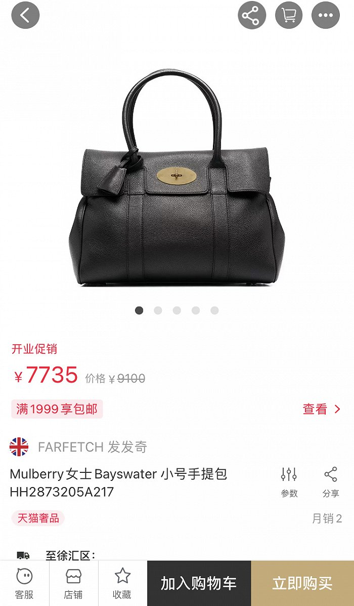 以英国奢侈包袋品牌Mulberry为例。这家英国奢侈包袋近来重整大中华市场的渠道,以直营旗舰店与直营电商为主。Mulberry目前在天猫开有品牌直营旗舰店,部分爆款也可能通过发发奇平台出售。