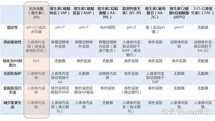左旋维C和维C衍生物的性质对比(表格源于知乎away博士)