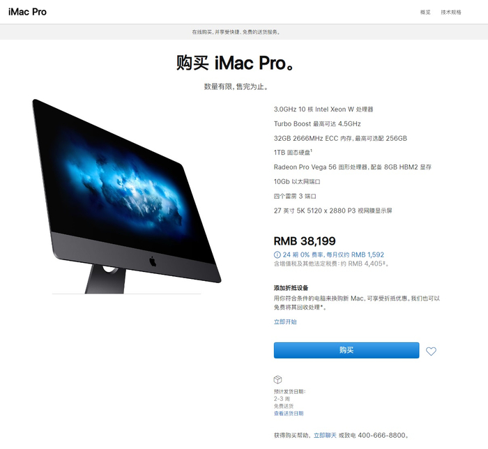 苹果iMac Pro退役,美国地区已无法购买,国行送货需2-3周