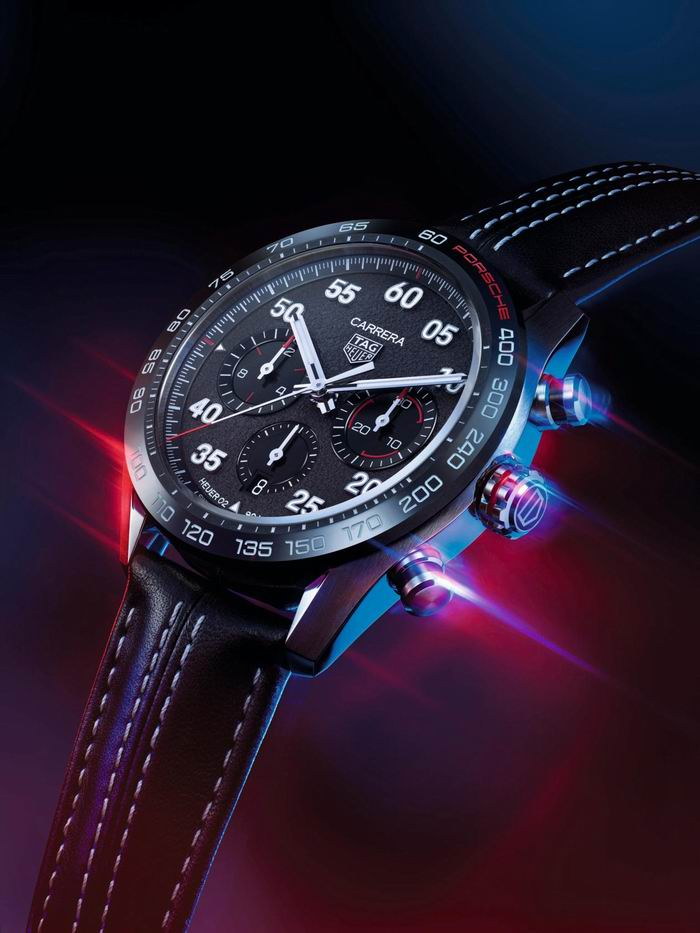 为了烘托这款突破性时计,品牌精心准备了带有创新缝线、外观近似保时捷内饰的奢华小牛皮表带,以及象征赛车流线型设计的表链。这款惊艳的时计搭载品牌自制泰格豪雅Calibre Heuer 02机芯,具有惊人的80小时动力储存。计时码表机构的垂直离合装置和导柱轮展现了品牌对于高精度的坚定要求。