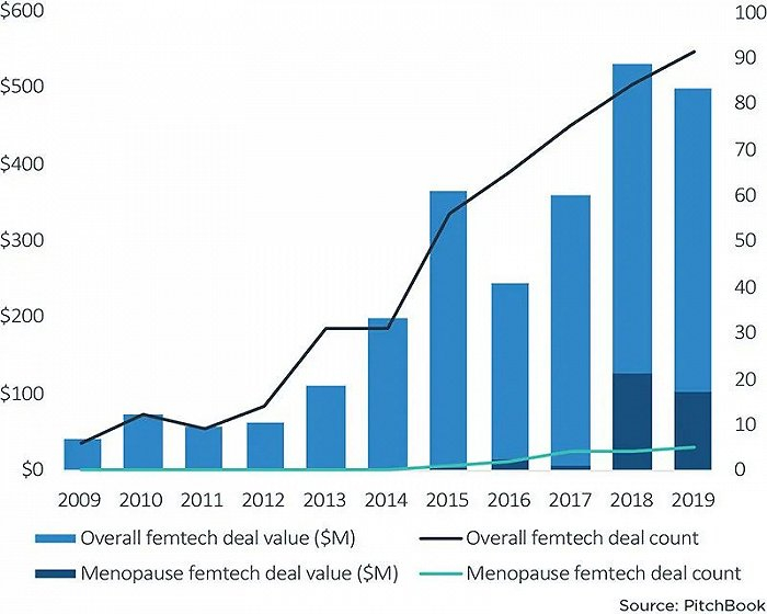 但过去十年内这一领域内超2亿美元的融资大多都分给了女性生育类的公司,针对更年期的只占了5%,整体投资类的风向也是对专注于以千禧一代为主要受众的公司倾注了更多关注。