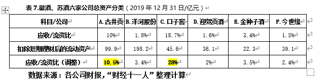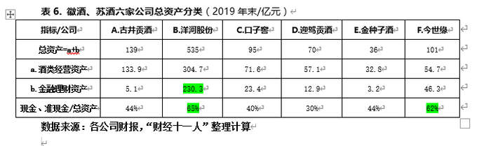 为了公允,可把白酒公司的资产,分成“酒类经营资产”和“金融理财资产”。后者,即俗称的“准现金”,见表6。