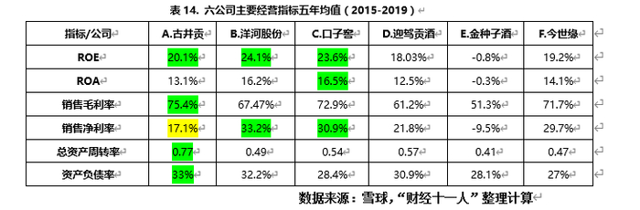 用杜邦分析推断,古井贡酒使用了最高的资产周转率和最高的资产负债率,抵消了销售净利率较低的负面影响。