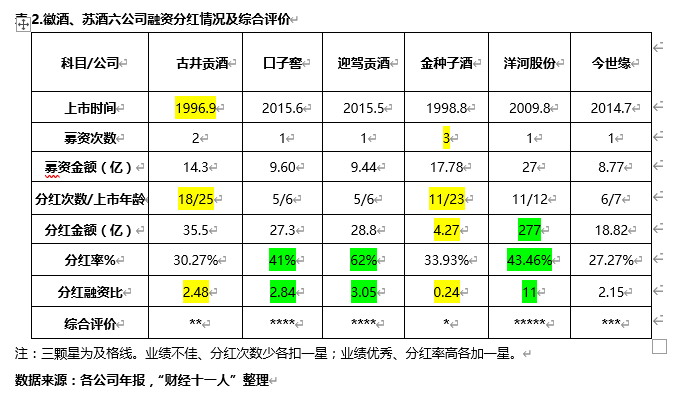从表2可知,徽酒板块分化严重。古井贡酒两次募资了14.3亿元,上市25年,分红融资比竟未超越上市才6年的口子窖、迎驾贡酒,“业绩一般+铁公鸡”;