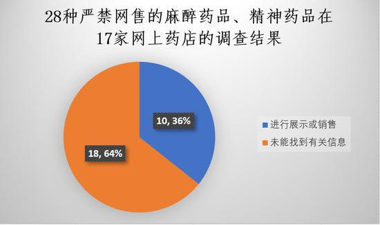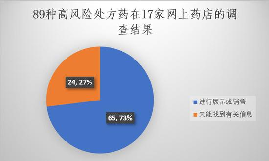 结果显示,28种严禁网络展示或销售的处方药中,有近4成(10/28)在不同平台违法进行了展示、提供登记开药或购买选项。其他高风险处方药中,这个数字则超过了7成(65/89)。