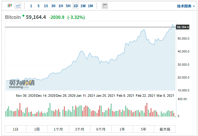 比特币是世界上最大的加密货币,周六创下60000美元的历史新高,今年的涨幅几乎翻了一番,因为在特斯拉首席执行官埃隆·马斯克(Elon Musk)等知名支持者的支持下,对付款的接受度有所提高。