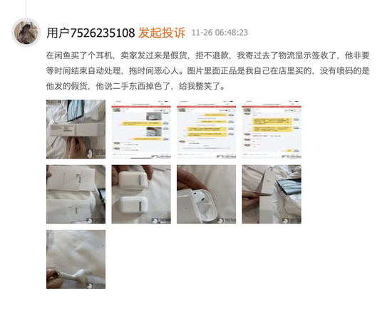 [案例一]闲鱼购买耳机为假货,退货后卖家签收却不退款
