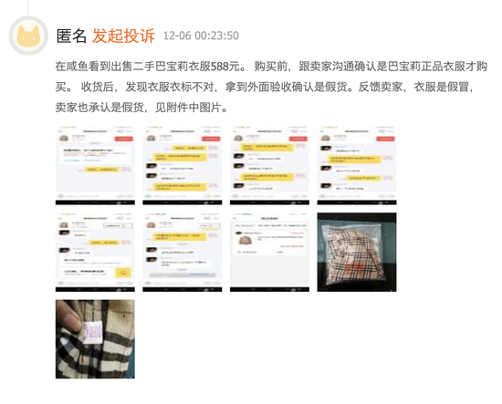 [案例二]闲鱼购买的二手巴宝莉衣服为假货