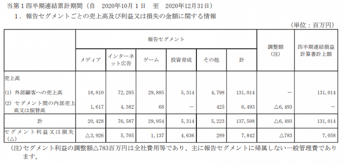 从各项业务来看,网络广告事业、投资事业及其他事业均实现了增收增益,游戏事业销售额及利润均同比减少,而包括AbemaTV、Ameba等在内的媒体事业,仍处于亏损状态。媒体事业一季度销售额为204亿2800万日元,同比增长67.0%,营业亏损39亿2600万日元,去年同期亏损为50亿5000万日元。