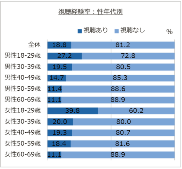 ●约5个人中就有1个人收看收费在线演唱会,18-29岁的女性约占4成。