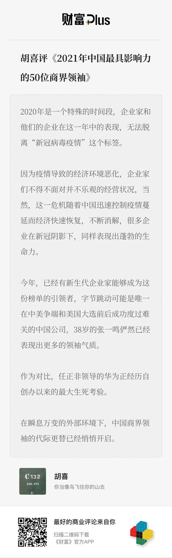 《财富》2021年中国最具影响力50位商界领袖:张一鸣任正非等上榜
