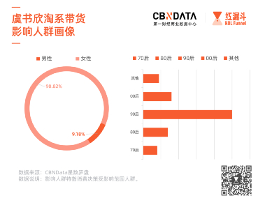 虞书欣化妆师杨单在视频中提到了经常给虞书欣本人使用的美瞳、眼影等单品,粉丝们出于想拥有爱豆同款的心理,自然心甘情愿的下单购买。在CBNData星数的明星消费影响力榜单中,虞书欣在美妆和女装品类的带货力排名最高进入过前10名,受其影响的女性消费者占比达到90.82%。