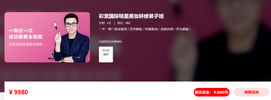 以唐毅为例,他的彩妆课程,学制4天,费用高达9980元。