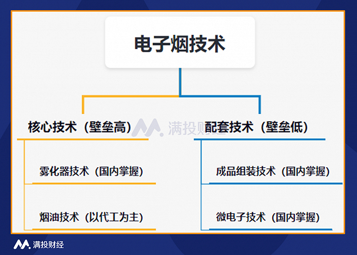 在电子烟的整个制作过程中,电子烟制作最为困难的核心技术为雾化器技术和烟油技术,目前,国内企业已具备自主生产电子雾化器的技术,而在烟油技术方面还相对薄弱,目前国内在烟油技术的商业模式上多为ODM和OEM。