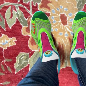 据悉,Gucci Virtual 25 数字运动鞋由该公司创意总监 Alessandro Michele 设计,具有矮胖的造型和粉绿配色的外观,且鞋舌上带有标志性的 GC Logo 。
