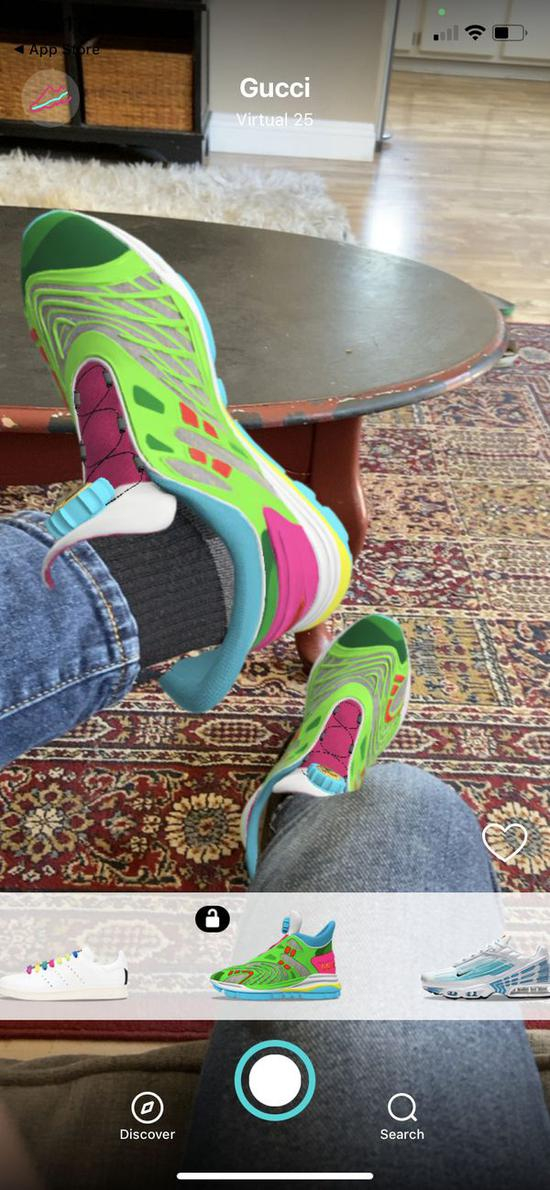 只需 12.99 美元(约 85 RMB),就可以让你获得别样的快乐。此外在 Wanna Kicks AR 运动鞋 App 中,这双“Gucci Virtual 25”数字运动鞋的价格更是低至 8.99 美元(约 59 RMB)。