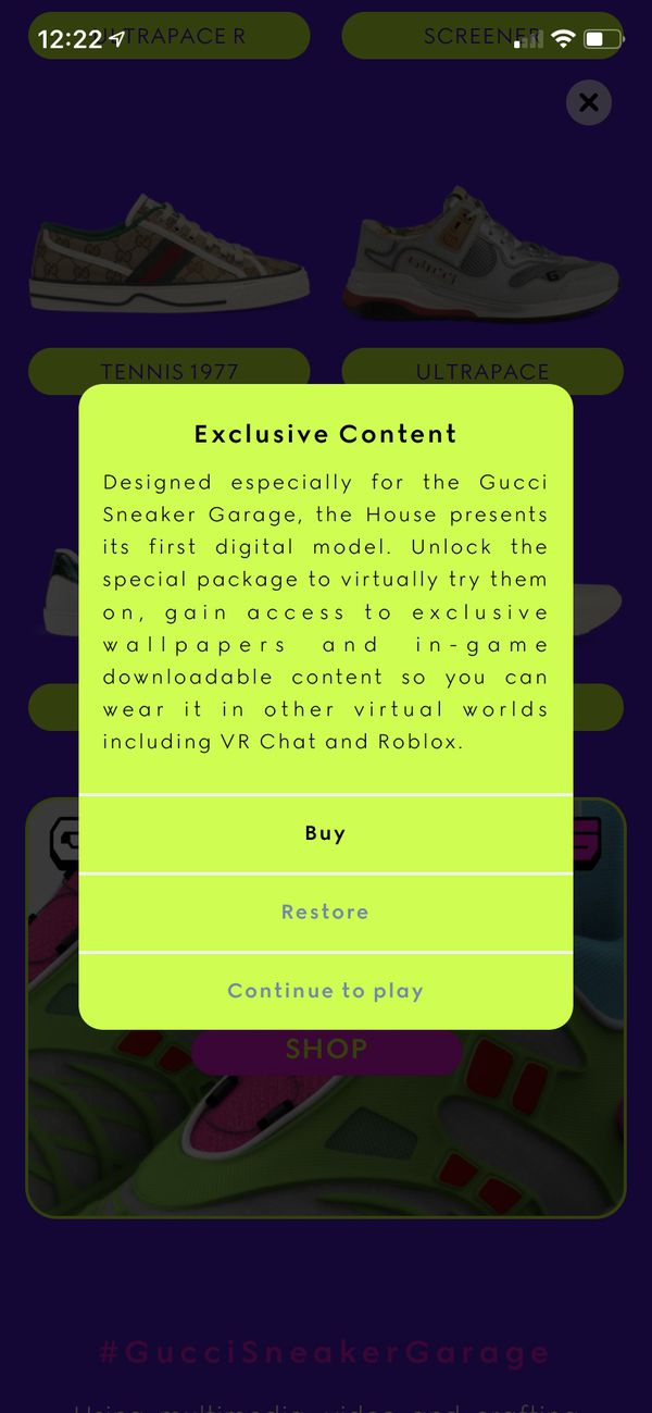 知名设施品牌 Gucci,刚刚推出了在 Roblox 和 CRChat 虚拟社区独家销售的“Gucci Virtual 25”数字运动鞋。通过屏配套的增强现实(AR)应用,用户可在虚拟现实世界中看到自己穿上这双特殊运动鞋的样子。此外与该品牌实际销售的商品相比,它的售价也要实惠得多。