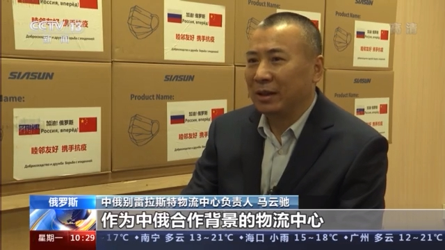 中俄别雷拉斯特物流中心海关业务主管 鲁斯兰:同中国的合作非常充实,特别是在运送防疫物资方面,从中国运来的口罩、手套和消毒液,对缓解新冠疫情起到了巨大帮助。