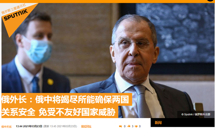 【环球网综合报道 侯佳欣 杨英琦】据俄罗斯卫星网刚刚消息,当地时间3月23日,俄罗斯外交部长拉夫罗夫表示,俄罗斯和中国将竭尽所能保障两国金融和贸易关系安全,免受来自不友好国家的威胁。