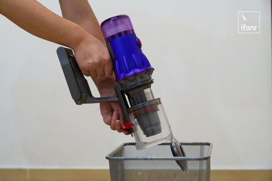 比如横向集尘筒的设计,这种弹射起步的设计在倾倒垃圾时候避免弄脏手,倾倒垃圾也更卫生。