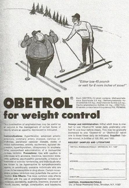 减肥?多么完美的噱头,各家药品公司为安非他命重做了包装后再度大量发售。