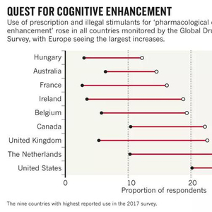 一项全球药物使用调查发现,2015~2017年期间,用于认知增强的处方药和非法兴奋剂的使用都在增加,其中以欧美为甚: