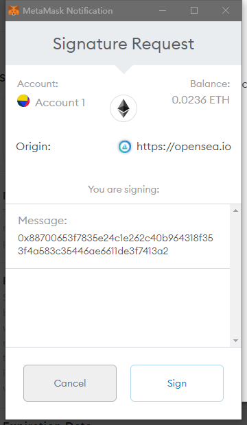 交易完成后,还需要在 MetaMask 上进行一个签名操作,才能完成上架的最后一步流程: