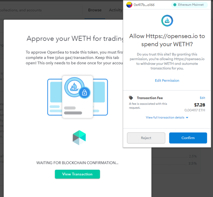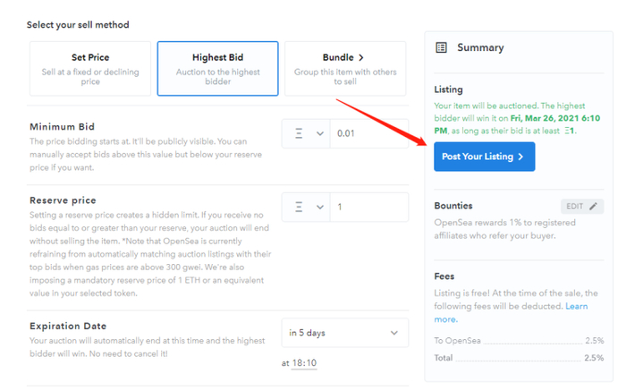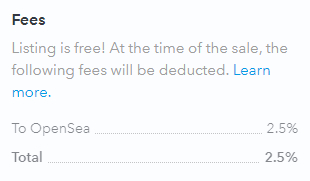 无论选择哪一种,OpenSea都会在成交的时候抽取2.5%的手续费: