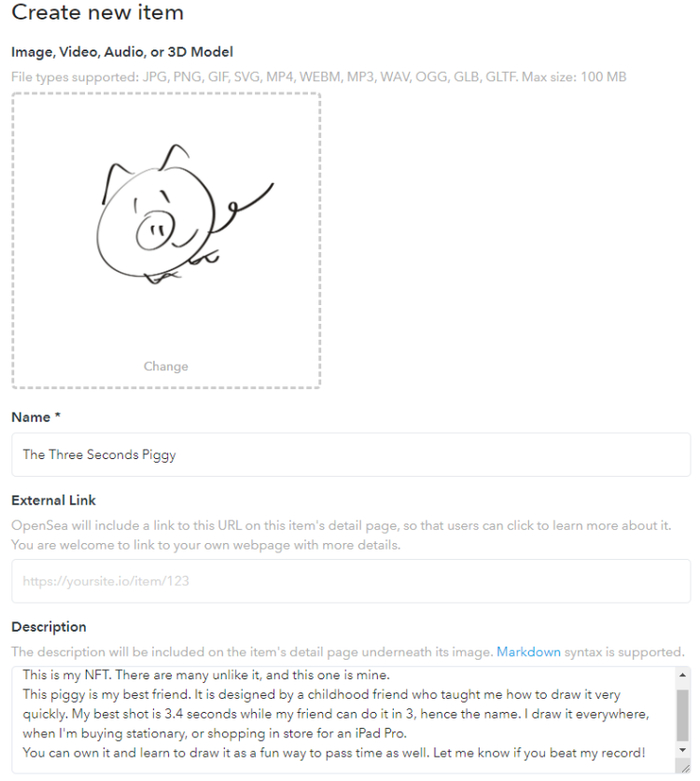 创建完成后,硅星人的三秒猪终于正式成为了 NFT。它的地址是 http://bit.ly/3secpiggy