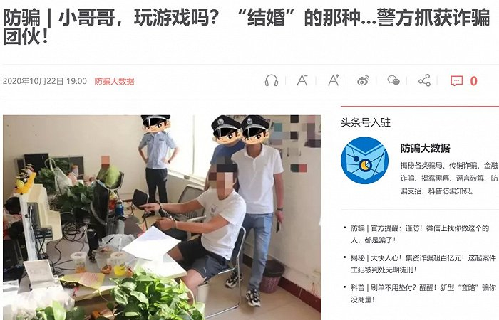 它也不再提供任何恋爱体验。有人抱怨游戏里“直男”们的骚扰,不经意地推动了祖安女孩们的觉醒;有人利用玩家“事网恋如事真恋”的心态设计了连环套,2020年9月央视就曝光了一系列以“网游结婚”为噱头的骗局,被害人涉及河南、上海等10余个省市。