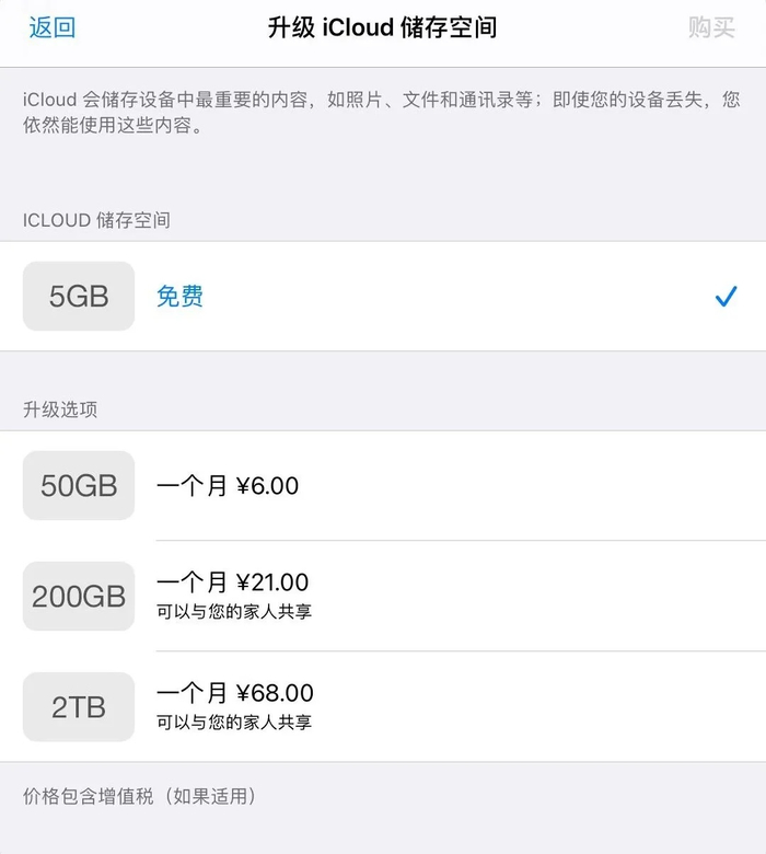 苹果公司iCloud储存空间升级价格
