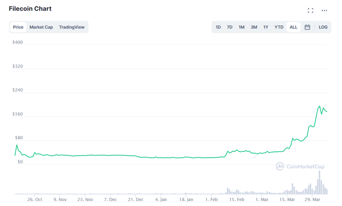 实际上,FIL源于加密货币市场出现的分布式存储技术IPFS协议,其价格主要受到人们对分布式存储技术以及IPFS协议的看涨预期的影响。
