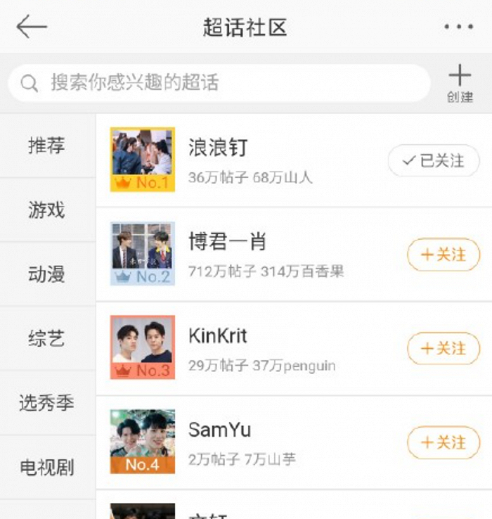 当然这三类cp在一定程度上可以并行不悖,例如有的粉丝会将角色与真人分开,像是《司藤》就衍生出角色cp超话“放肆藤你”、真人cp超话“超甜冰淇淋”。也有的将这两种聚合在一起,比如“浪浪钉”的导语里就明确写道,该超话属于“山河令的cp超话+真人cp超话”。