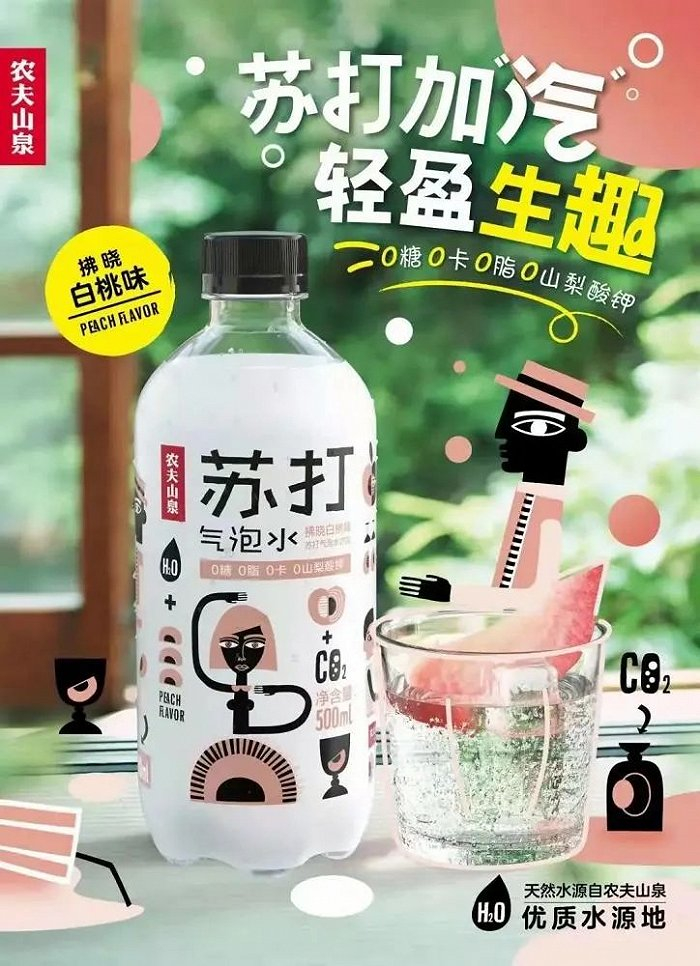 百事可乐刚刚推出了“太汽”系列白桃乌龙味可乐;农夫山泉最近的几款新品气泡水产品中,就包括“拂晓白桃味”;可口可乐旗下的AH!HA!小宇宙气泡水正式进入中国市场,其中之一就是白桃乌龙口味;华润怡宝的低浓度果汁饮料,也增加了“桃桃假日”新品,标注称“口味精选优质国产白桃汁”。