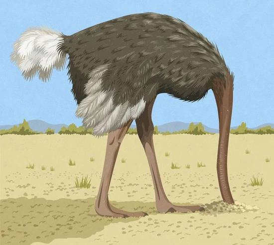 鸵鸟在遇到危险的时候会把头埋进沙子里,自己看不见敌人,就以为敌人也看不见自己。