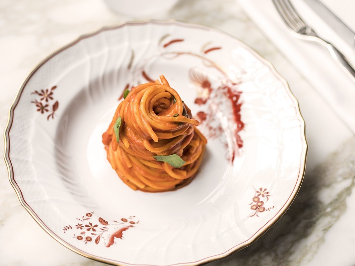 近日,北京宝格丽酒店Il Ristorante Niko Romito餐厅推出了新菜单。Niko Romito主厨运用单烹制手法,仅使用意大利面和番茄两种本味食材来烹饪番茄意面,强化食物本身的自然风味。此外还有意式手工土豆饺子、蒸蓝龙虾搭配鹰嘴豆泥,龙虾汁及菊苣、烤海鲈鱼配番茄,香蒜及欧芹来填饱你的肚子。餐后可以来一口黄金巧克力和草莓冷汤配酸奶冰淇淋,感受纯正的意式风味。