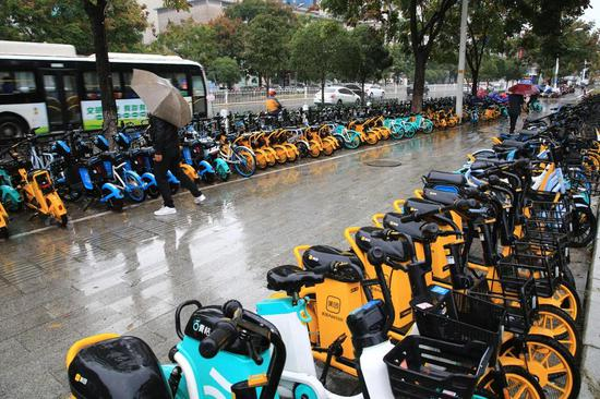 五颜六色的共享电单车逐渐替代了共享自行车,成为三、四线城市人们交通出行的首选。官方数据显示,2019年底,长沙有共享电单车接近10万辆,但在2020年5月,就有13个品牌、超过30万辆电单车投放。在次年公开的首份共享电单车行业报告里,有长沙人最多一天骑13次。在九江,同时有10个共享电单车品牌在市区四大高校、重要商圈及重点小区进行被大范围投放和使用。