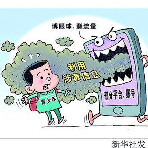 新华每日电讯4月13日消息,日前,全国“扫黄打非”办公室安排部署开展“新风2021”集中行动,其中“深层清理网上对未成年人具有诱导性的不良内容”“督促网络平台实施‘青少年模式’”并切实发挥作用是“护苗2021”专项行动的核心内容。新华社记者调查发现,当前,部分平台、账号利用涉黄信息博眼球、赚流量的问题仍屡见不鲜:有社交软件中存在大量“污”表情;有聊天群、社交平台的话题中发布涉黄图片、语音,诱导色情交易;部分短视频平台上充斥暴露低俗的“露肉UP”,且这些内容对大多数青少年,特别是未成年人轻易可见。